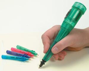 The Squiggle Wiggle Writer is a battery operated vibrating pen that turns straight lines into a series of loops, circles, or curves, depending on how close it is held to the writing surface. Not only is it outrageously fun, it gives tactile stimulation and encourages appropriate grasp. Occupational and developmental therapists love the Squiggle Wiggle Writer for young writers as it helps them develop better coordination.