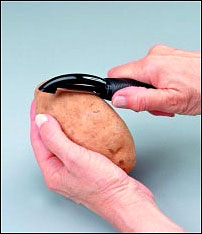 The Good Grips Swivel Peeler provides comfortable and safe peeling by providing a cushioned, built up handle and a stainless steel swiveling blade. The handle is built up and cushioned to ease tension in the hand and provides an excellent non-slip grip, even when wet. The swiveling blade allows for easy peeling with less wrist movement. The Good Grips Swivel Peeler is dishwasher safe.