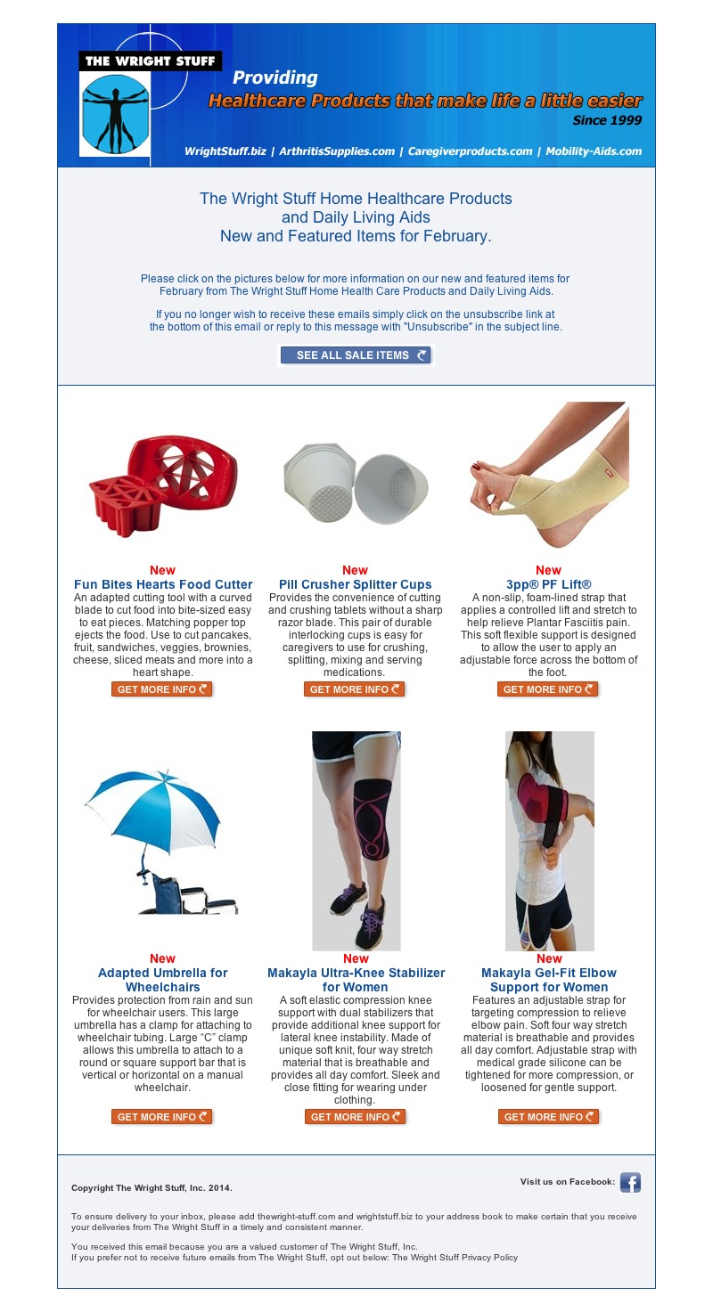 Click on the image below to see our New and Featured products for February 2014 from The Wright Stuff Home Health Care Products and Daily Living Aids.